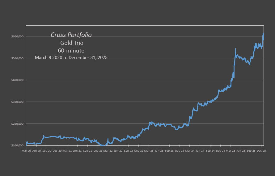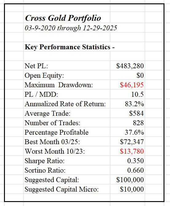 The Cross Gold strategies parameters were updated as of this posting. These statistics are internally consistent but will not tie out with previously posted statistics.