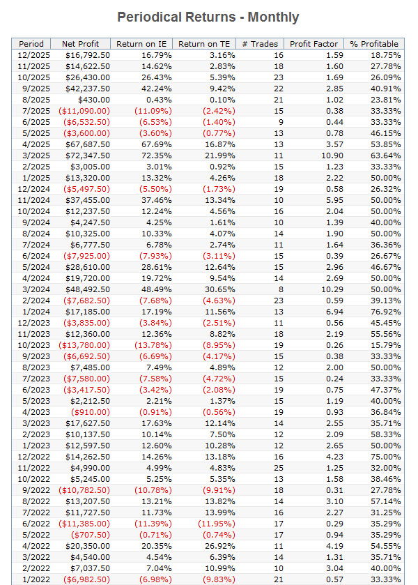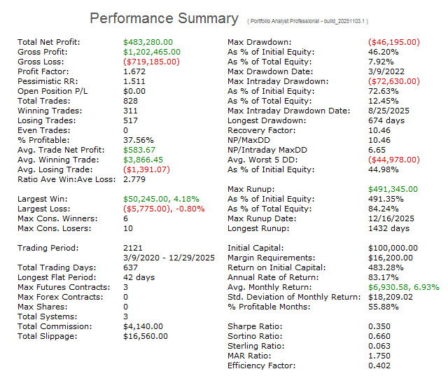 We have established a relationship with an excellent clearing firm which can auto-trade this portfolio for you on the full size or micro contracts. If you are interested in this reach out to us via our Contact page - https://www.pardo.space/contact.