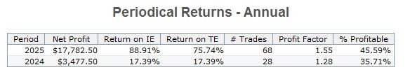 Nonetheless, every Cross MBT Trio strategy has been validated for robustness using our proprietary application of Walk-Forward Analysis. Every strategy in the Cross MBT Trio portfolio has to pass this rigorous and unique process. Period.