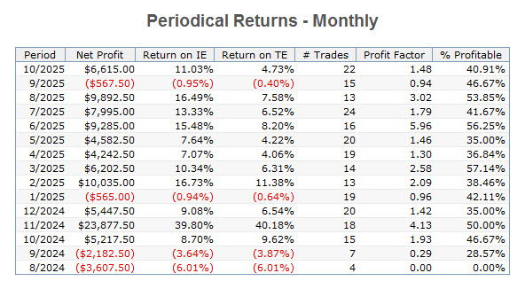 We have established a relationship with two excellent clearing firms which can auto-trade this portfolio for you on the full size or micro contracts. If you are interested in this reach out to us via our Contact page - https://www.pardo.space/contact.