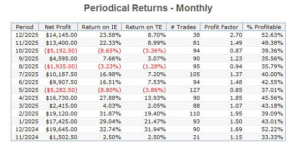 CFTC RULE 4.41 - HYPOTHETICAL OR SIMULATED PERFORMANCE RESULTS HAVE CERTAIN LIMITATIONS. UNLIKE AN ACTUAL PERFORMANCE RECORD, SIMULATED RESULTS DO NOT REPRESENT ACTUAL TRADING. ALSO, SINCE THE TRADES HAVE NOT BEEN EXECUTED, THE RESULTS MAY HAVE UNDER-OR-OVER COMPENSATED FOR THE IMPACT, IF ANY, OF CERTAIN MARKET FACTORS, SUCH AS LACK OF LIQUIDITY. SIMULATED TRADING PROGRAMS IN GENERAL ARE ALSO SUBJECT TO THE FACT THAT THEY ARE DESIGNED WITH THE BENEFIT OF HINDSIGHT. NO REPRESENTATION IS BEING MADE THAT ANY ACCOUNT WILL OR IS LIKELY TO ACHIEVE PROFIT OR LOSSES SIMILAR TO THOSE SHOWN.