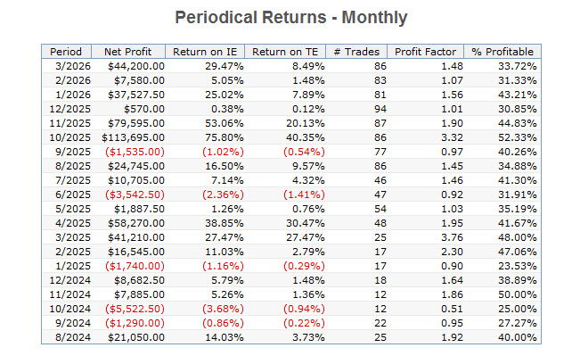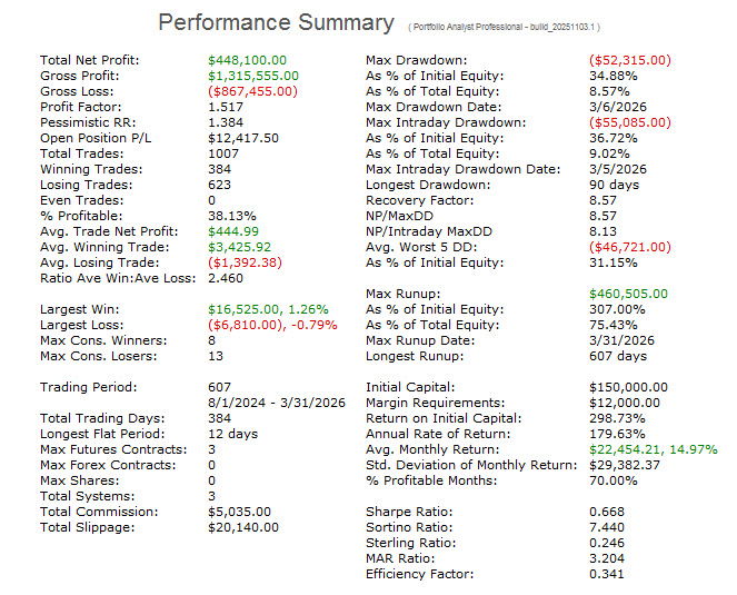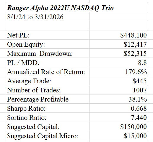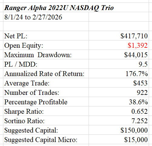 CFTC RULE 4.41 - HYPOTHETICAL OR SIMULATED PERFORMANCE RESULTS HAVE CERTAIN LIMITATIONS. UNLIKE AN ACTUAL PERFORMANCE RECORD, SIMULATED RESULTS DO NOT REPRESENT ACTUAL TRADING. ALSO, SINCE THE TRADES HAVE NOT BEEN EXECUTED, THE RESULTS MAY HAVE UNDER-OR-OVER COMPENSATED FOR THE IMPACT, IF ANY, OF CERTAIN MARKET FACTORS, SUCH AS LACK OF LIQUIDITY. SIMULATED TRADING PROGRAMS IN GENERAL ARE ALSO SUBJECT TO THE FACT THAT THEY ARE DESIGNED WITH THE BENEFIT OF HINDSIGHT. NO REPRESENTATION IS BEING MADE THAT ANY ACCOUNT WILL OR IS LIKELY TO ACHIEVE PROFIT OR LOSSES SIMILAR TO THOSE SHOWN.