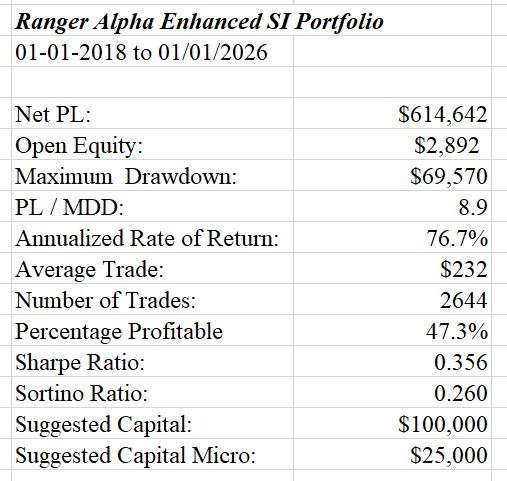 CFTC RULE 4.41 - HYPOTHETICAL OR SIMULATED PERFORMANCE RESULTS HAVE CERTAIN LIMITATIONS. UNLIKE AN ACTUAL PERFORMANCE RECORD, SIMULATED RESULTS DO NOT REPRESENT ACTUAL TRADING. ALSO, SINCE THE TRADES HAVE NOT BEEN EXECUTED, THE RESULTS MAY HAVE UNDER-OR-OVER COMPENSATED FOR THE IMPACT, IF ANY, OF CERTAIN MARKET FACTORS, SUCH AS LACK OF LIQUIDITY. SIMULATED TRADING PROGRAMS IN GENERAL ARE ALSO SUBJECT TO THE FACT THAT THEY ARE DESIGNED WITH THE BENEFIT OF HINDSIGHT. NO REPRESENTATION IS BEING MADE THAT ANY ACCOUNT WILL OR IS LIKELY TO ACHIEVE PROFIT OR LOSSES SIMILAR TO THOSE SHOWN.