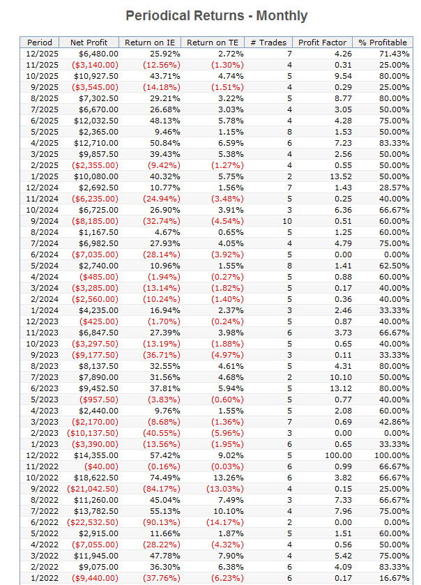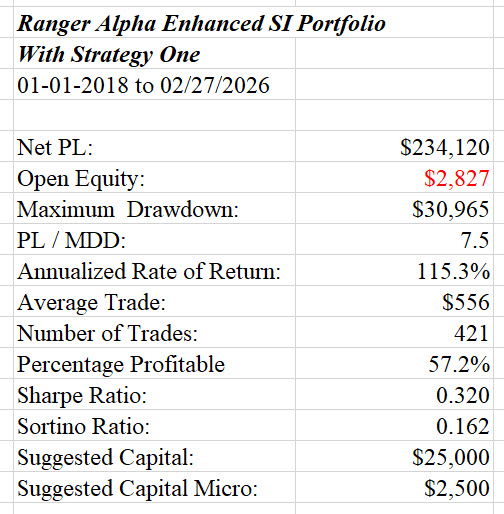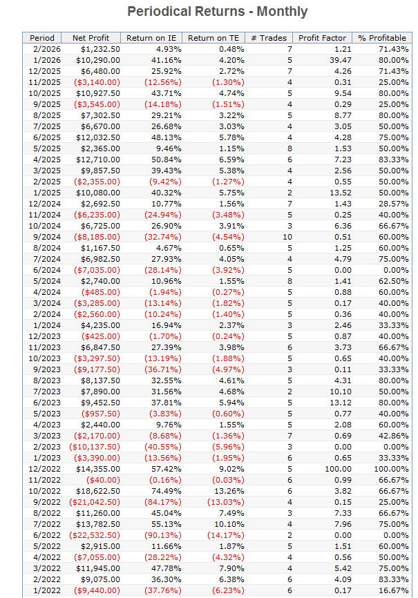 CFTC RULE 4.41 - HYPOTHETICAL OR SIMULATED PERFORMANCE RESULTS HAVE CERTAIN LIMITATIONS. UNLIKE AN ACTUAL PERFORMANCE RECORD, SIMULATED RESULTS DO NOT REPRESENT ACTUAL TRADING. ALSO, SINCE THE TRADES HAVE NOT BEEN EXECUTED, THE RESULTS MAY HAVE UNDER-OR-OVER COMPENSATED FOR THE IMPACT, IF ANY, OF CERTAIN MARKET FACTORS, SUCH AS LACK OF LIQUIDITY. SIMULATED TRADING PROGRAMS IN GENERAL ARE ALSO SUBJECT TO THE FACT THAT THEY ARE DESIGNED WITH THE BENEFIT OF HINDSIGHT. NO REPRESENTATION IS BEING MADE THAT ANY ACCOUNT WILL OR IS LIKELY TO ACHIEVE PROFIT OR LOSSES SIMILAR TO THOSE SHOWN.