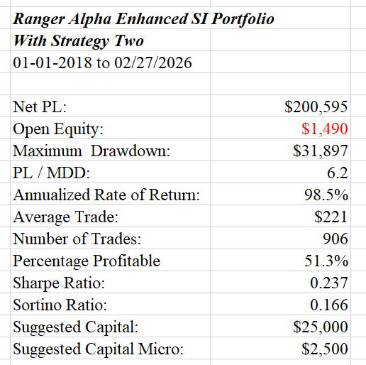 CFTC RULE 4.41 - HYPOTHETICAL OR SIMULATED PERFORMANCE RESULTS HAVE CERTAIN LIMITATIONS. UNLIKE AN ACTUAL PERFORMANCE RECORD, SIMULATED RESULTS DO NOT REPRESENT ACTUAL TRADING. ALSO, SINCE THE TRADES HAVE NOT BEEN EXECUTED, THE RESULTS MAY HAVE UNDER-OR-OVER COMPENSATED FOR THE IMPACT, IF ANY, OF CERTAIN MARKET FACTORS, SUCH AS LACK OF LIQUIDITY. SIMULATED TRADING PROGRAMS IN GENERAL ARE ALSO SUBJECT TO THE FACT THAT THEY ARE DESIGNED WITH THE BENEFIT OF HINDSIGHT. NO REPRESENTATION IS BEING MADE THAT ANY ACCOUNT WILL OR IS LIKELY TO ACHIEVE PROFIT OR LOSSES SIMILAR TO THOSE SHOWN.